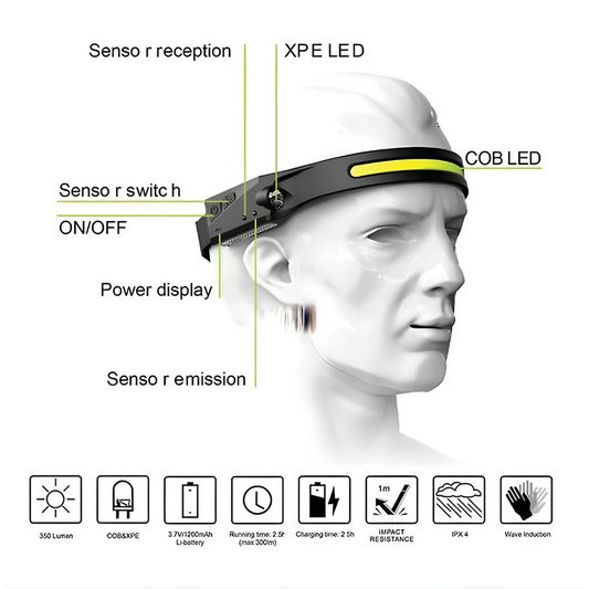 Lampa Frontală LED Reîncărcabilă cu Senzor de Mișcare