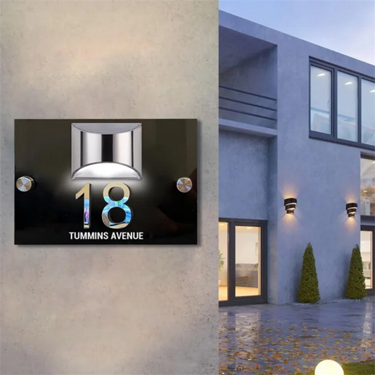 Placă de Casă cu Iluminare LED Solară, Personalizată cu Număr și Nume, Design Modern - 19x23 cm