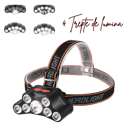 Lanternă frontală HX-810 cu 5 LED și 7 moduri iluminare, acumulator reîncărcabil
